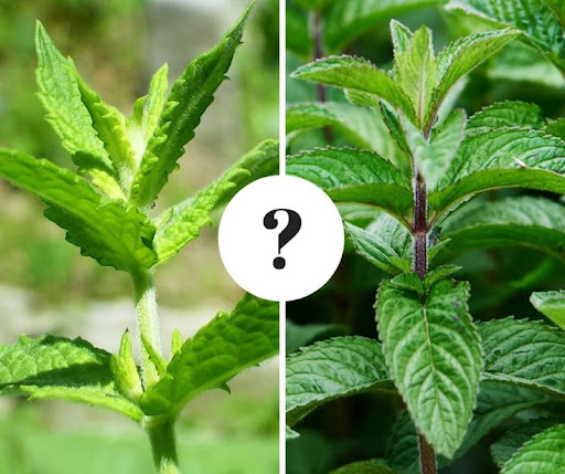 You can also note the difference if you look very closely at the two leaves side-by-side spearmint